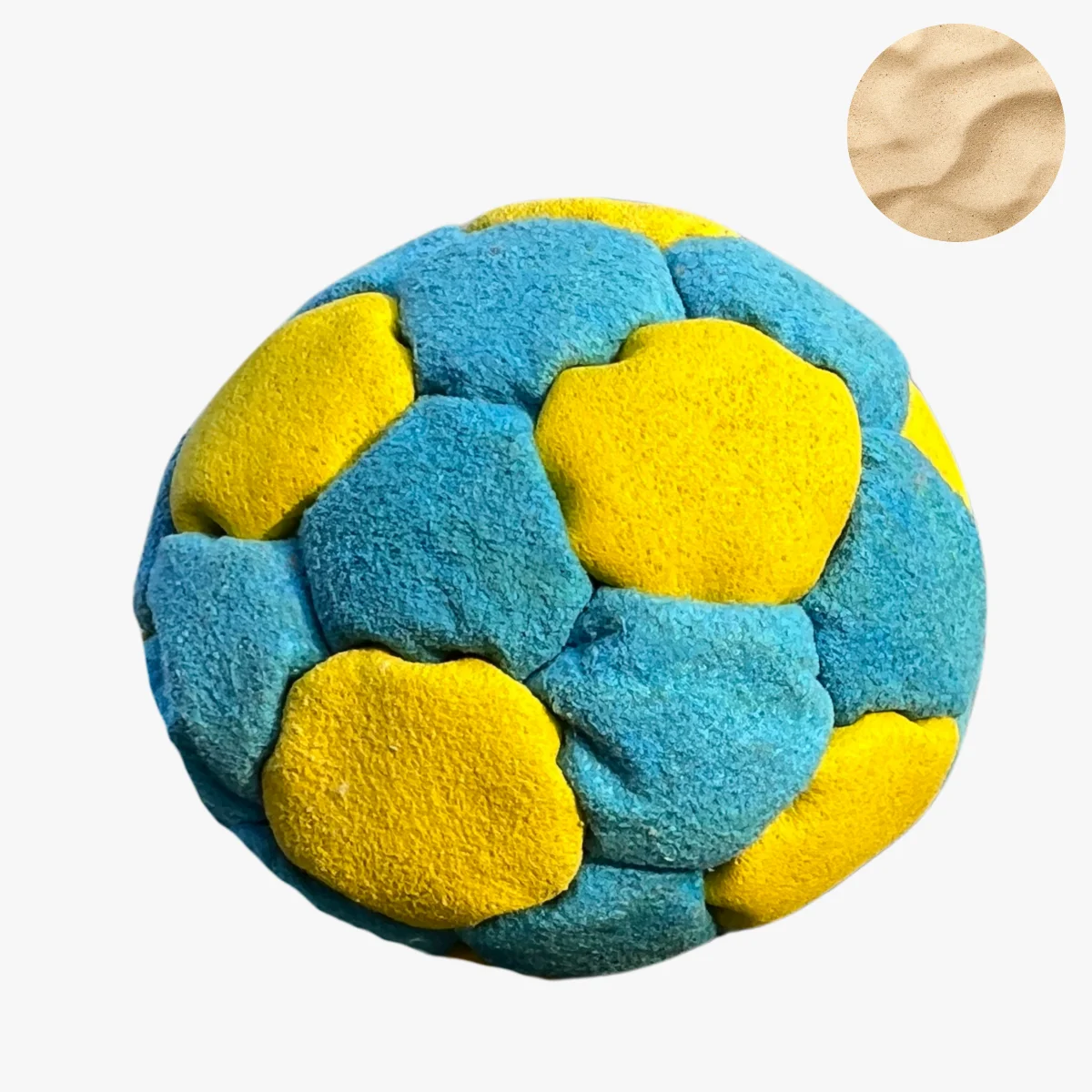 Die Sandfüllung besteht nicht aus herkömmlichem feinen Sand, sondern aus einer speziellen Kombination größerer Sandkörner und Mini-Steinen. Diese verhindern Staubbildung und verbessern die Langlebigkeit – so bleibt dein Footbag formstabil, kontrollierbar und perfekt ausbalanciert.
